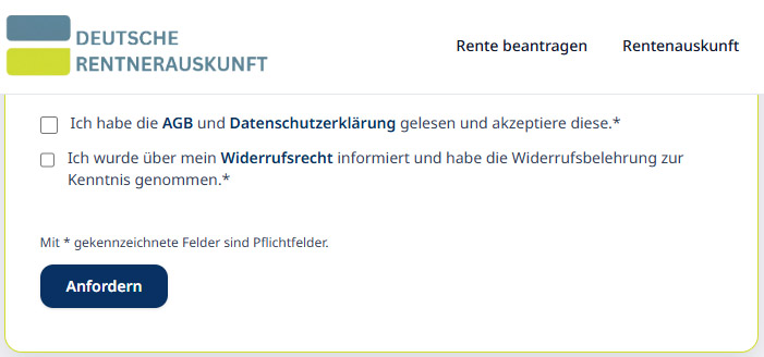 Auf dem Bestellbutton für die verschiedenen Rentendokumente steht lediglich das Wort „Anfordern“. Für kostenpflichtige Online-Verträge muss jedoch eindeutig erkennbar sein, dass Verbraucherinnen und Verbraucher mit dem Klick eine Zahlungspflicht auslösen. Das Bürgerliche Gesetzbuch verlangt deshalb eine Beschriftung wie „Zahlungspflichtig bestellen“ oder eine andere ebenso klare Formulierung.